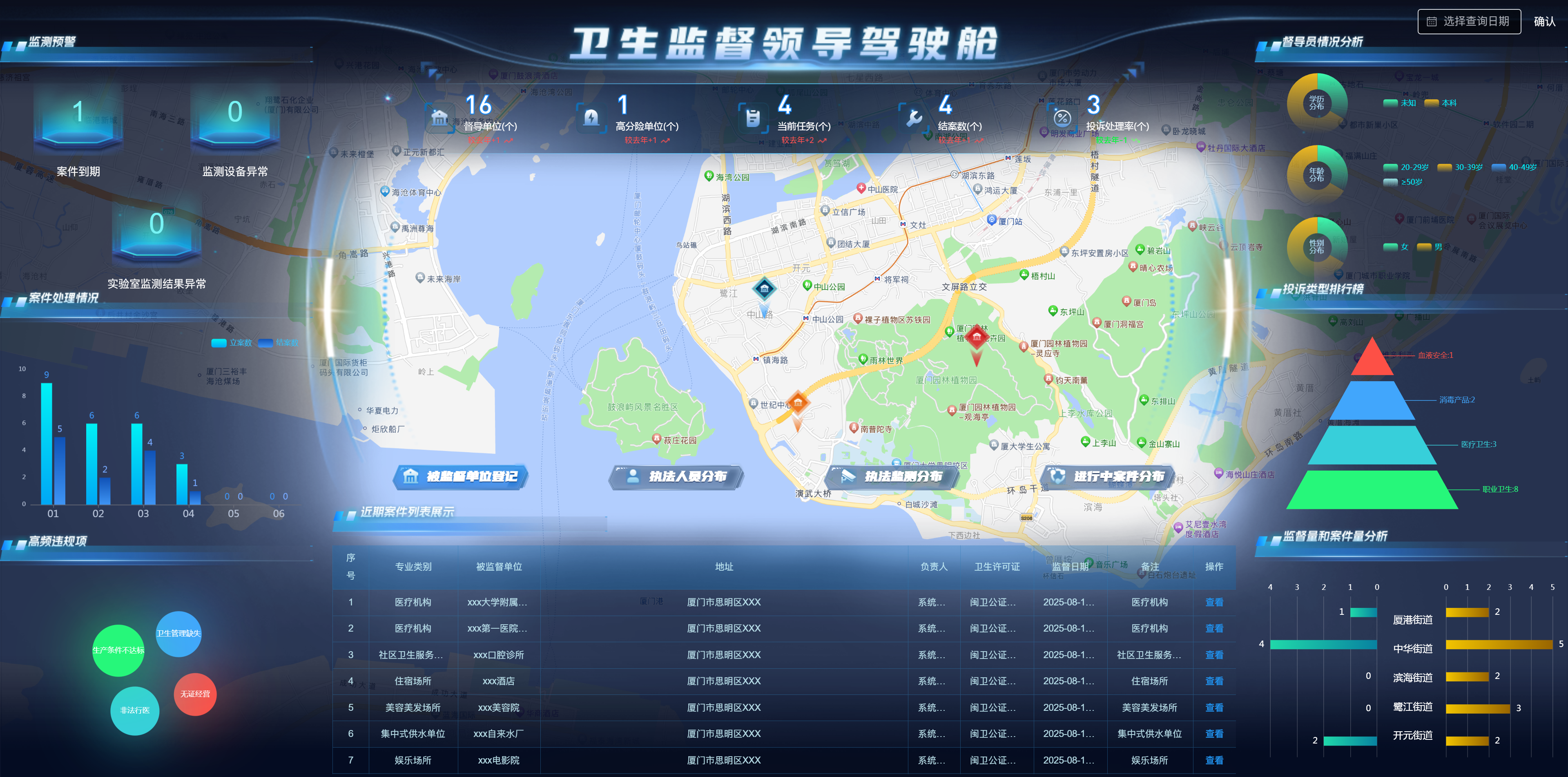 “智慧衛(wèi)監(jiān)綜合監(jiān)管服務(wù)管理系統(tǒng)”涵蓋監(jiān)督執(zhí)法應(yīng)用、非現(xiàn)場執(zhí)法應(yīng)用、碼上監(jiān)管、可視化駕駛艙、信息交換系統(tǒng)等內(nèi)容,實(shí)現(xiàn)加強(qiáng)衛(wèi)生監(jiān)督綜合執(zhí)法能力建設(shè),依法推進(jìn)衛(wèi)生監(jiān)督工作,不斷創(chuàng)新衛(wèi)生監(jiān)督執(zhí)法手段,提高衛(wèi)生監(jiān)督的監(jiān)管和應(yīng)急處置水平,通過建設(shè)智慧衛(wèi)監(jiān)系統(tǒng),將傳統(tǒng)現(xiàn)場監(jiān)管與非現(xiàn)場物聯(lián)網(wǎng)智能監(jiān)督監(jiān)測手段相結(jié)合,解決目前衛(wèi)生監(jiān)督機(jī)構(gòu)無法及時掌握和處置突發(fā)狀況的問題,做到在第一時間獲取現(xiàn)場數(shù)據(jù),在事件發(fā)生、升級前提前預(yù)警和處置,提高執(zhí)法效率。